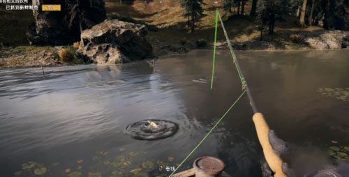 3. 此时拉扯若成功的话,钓鱼线会呈现漂亮干净的绿叶色,此时可以按住右键卷线。(钓鱼线拉扯声音也会停止,是卷线的好时机)