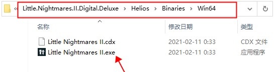 3、打开游戏目录HeliosBinariesWin64,点击Little Nightmares II.exe进入游戏;