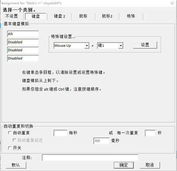 例如,您可以为一个操纵杆指定Alt + F4的组合按钮。