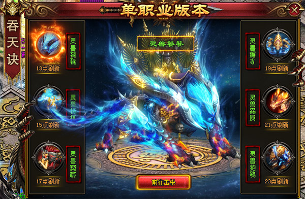 六大灵兽BOSS会定时出现在灵兽驻地灵兽BOSS掉落无归属大家都能拾取!