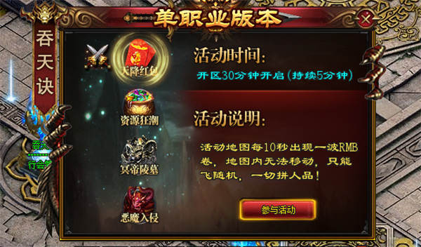 每日可进入6次,随机进入消耗5万金币/绑金,选中进入每次消耗500元宝