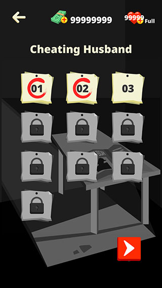 1、游戏操作说明:进入游戏,点击“指纹”图标-->弹出“CHEATING HUSAND”提示框,点击“TAP TO CONTINUE”即可开始游戏。