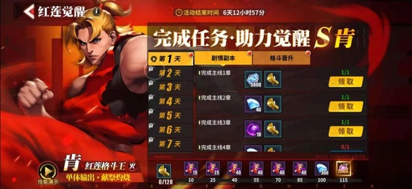 1. 开测第一天会出上线红莲觉醒活动,完成指定任务,达到一定进度即可获取肯的碎片,任务一共七天,结束后可以将主角肯提升至S级,大家可以根据任务指引尽快完成;