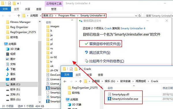 7、安装完后将破解补丁复制到安装目录下替换原文件,一般默认安装目录为C:Program FilesSmarty Uninstaller 4