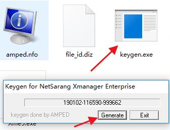Xmanager 4软件安装完成后回到数据包中运行注册机,点击“generate”即可生成注册码,将注册码复制到软件上进行注册即可