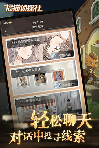 2、每通过一个关卡就会解锁新的内容,你要辗转于不同的场景和案件之中;