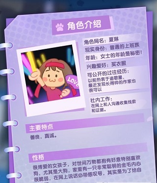 小探员可以在好友里查看到目前您案件相关添加的所有角色,不同的角色都会有属于自己的头像、个性签名、朋友圈和自我介绍,主线剧情里的选择、发红包,以及单独私聊、赠送礼物都有可能提高角色的好感度。达到一定好感度就可以看到角色的私人动态,更全面地了解这个故事。