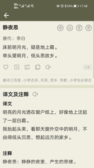 古诗文网app官方版是一款非常好用的是学习辅助软件,里面装满了好多好多的古诗文,你可以随便挑、随便看。每首诗旁边都有很详细的解释,就像有个老师在你身边,一点点给你讲解这首诗的意思,还有诗人写这首诗时的心情和想说的话。