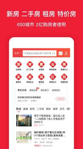 实时更新新楼盘;二手房:精准筛选真房源;查房价:随时随地查房价。