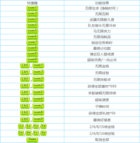 数字键 1 - 无限生命 (挣脱时间)数字键 2 - 无限瓦斯