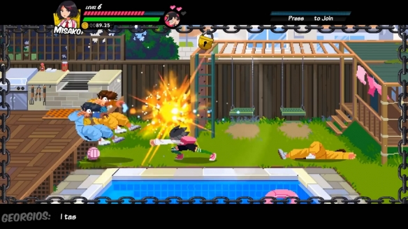 "河城又出麻烦事!但这次男生们束手无策!在这部传说级格斗游戏系列的续作之中,热血硬派国夫君和阿力被人抓走,复仇的任务落在两个女孩——美沙子和京子身上。想干架?奉陪到底啦!在游戏中拳打南街,脚踢北巷(单人模式、合作模式均可),学习新的绝招,大吃增进精力的食物,巧妙活用各种武器,再使出各种连段、投掷、特殊技能的话……准能打得坏蛋们哭爹喊娘!而且最棒的是,游戏是16bit风格!炫酷的武打场景中,不仅穿插了漫画分镜、动画特写,还有超级帅气的合成电音配乐哦!原汁原味,大闹新时代!其他版本下载