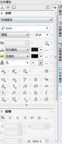 (1)字体面板:用于设定字体、字号等。一般在属性栏里就可以设置。