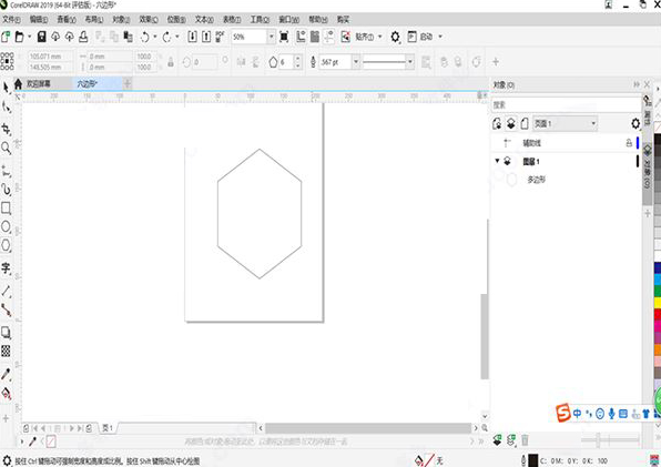 2、打开CDR矢量绘图软件后,直接用快捷键Ctrl+N新建文档。单击左侧的工具栏中的多边形工具,初始设定是五边形,单击上边工具栏增加边数即可画出六边形了,按住拖动出适合的大小即可。