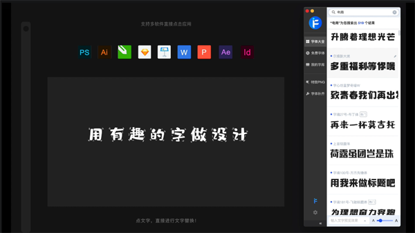 一键使用字体:在字魂的字体列表中点击快速在设计方案中使用字体。