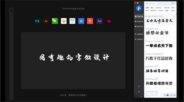 直接、快速与软件交互:无需下载安装字体快速在字体助手中使用字体。