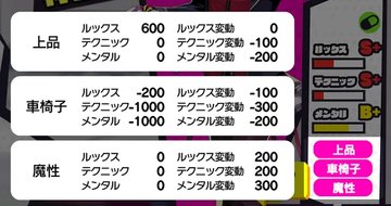 如图所示,这个妹子有上品,车椅子和魔性三个属性,前面的数值是妹妹们的固定数值。这个没问题。需要注意的是变动值,即接待客人时一定会增加或扣除的数值。比如说,这个妹妹去迎接客人的话,妹妹的颜值会变动成什么样的数值呢?