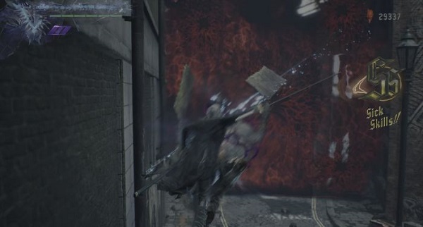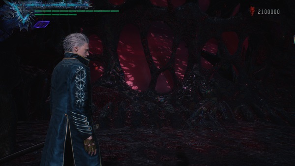 值得一提的是,在游戏进行到后期,卡普空为各位玩家准备了一份大礼,会安排玩家操控维吉尔与但丁打一架。这场以但丁作为BOSS的战斗展现了卡普空极高的设计水准,无论是阶段变化还是招式套路都富有挑战性,系列老粉丝一定不会失望。而且由于但丁的一招一式也都全部基于游戏的设计,你甚至可以从这场战斗中发掘到操作但丁战斗的连招套路。