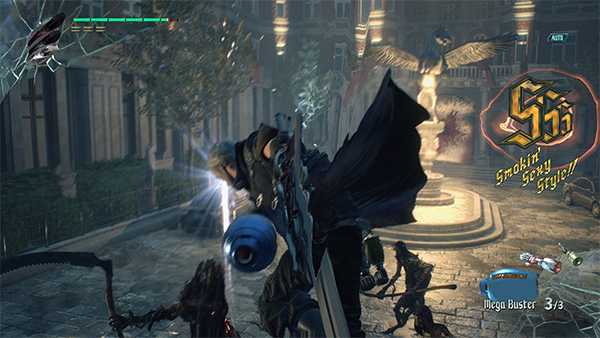 得益于幻影剑的特殊设定,维吉尔在本作中可以在一定范围里瞬移到敌人面前,冷却时间极短且无消耗。如果时机把握得当,这一招不仅能躲避敌人的攻击,还可以较为轻松地在战斗中无限滞空。在熟悉了这一特性之后,我在许多情况下都会选择更冒进的近身战斗,而这能让我比以往更容易收获SSS评价。