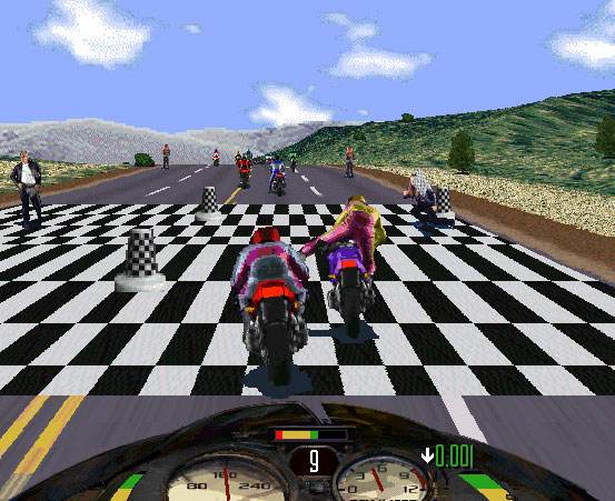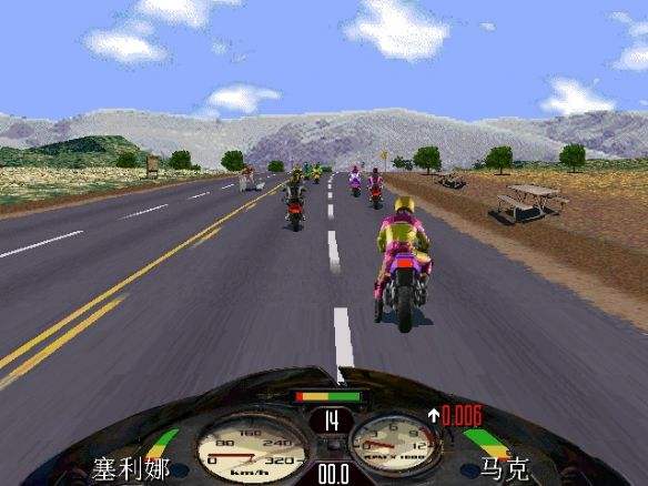 6、用脚踢别人。摩托跑在前几名后,可以用一些暴力动作,如果与别的选手跑的比较近,可以用脚踢,抓住时机,一脚把对方踢倒,等他再起来骑上到摩托时,你已经跑出很远了。