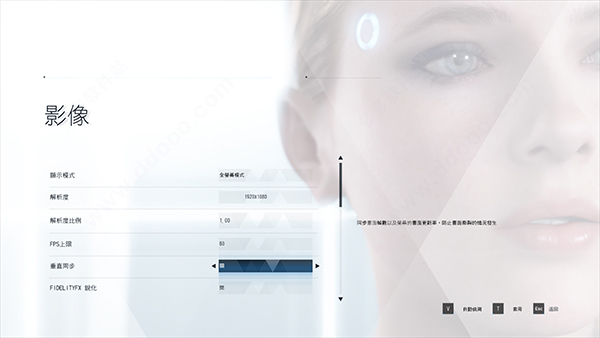 11、在设置中,我们还能设置游戏的影像,建议开启全屏,并将游戏分辨率调整为自己显示器的分辨率。好了以上就是底特律成为人类破解版安装教程,祝大家游戏愉快。