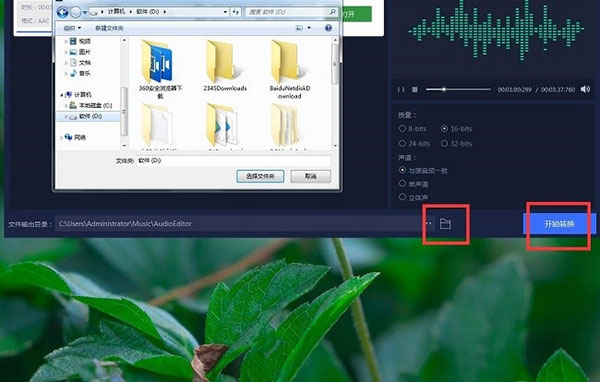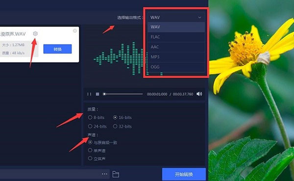 添加之后,打击往右边看,会有一个选择输出格式,在里面点击自己想要转换的格式,其中在自己添加的文件夹中也可以设置格式,看到设置按钮打开你们就看到了。然后还有质量和声道我们需要简单的设置一下。