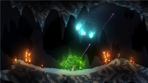 8、游戏中很多场景都可以破坏,某些道具还会产生连锁反应。例如最初洞穴里天上的吊灯在被玩家击落后就会在地上生成火焰,而火焰一但落在木头等可燃物上就会将其烧干净。这些危险的元素对于玩家和敌人来说同样都是有威胁的。如果身上着火或者染了毒液那么找一处水池浸泡就是当务之急。