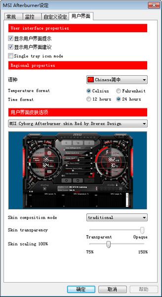 MSI Afterburner提供多种介面外观风格供玩家选择,同时能自行设定显示在介面上的监控选项。