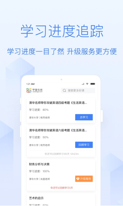1.学堂在线,让你随时随地进入知识充电模式!2.免费为你提供可兑换证书的精品公开课!