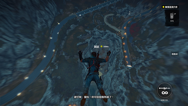 1、钩爪是主角里科的强力工具,用它能登天入地,翻山越岭。最基本的运用是单击LB(F)朝目标发射绳索,即可施现推进。在途中再按A(空格)释放降落伞飞行。在飞行中再次瞄准目标单击LB(F),可以获得助力持续的飞行。