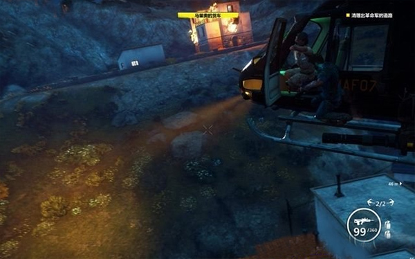 4、钩爪还可以让里科快速的飞到装甲车上,甚至飞到空中的直升机上进行劫持。