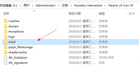3、打开我的电脑文档Paradox InteractiveHearts of Iron IVmod,如果没有mod文件夹就创建名为mod的文件夹