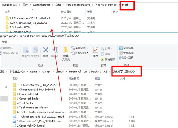 4、将“汉化补丁以及MOD”文件夹中的全部文件复制到mod文件夹中