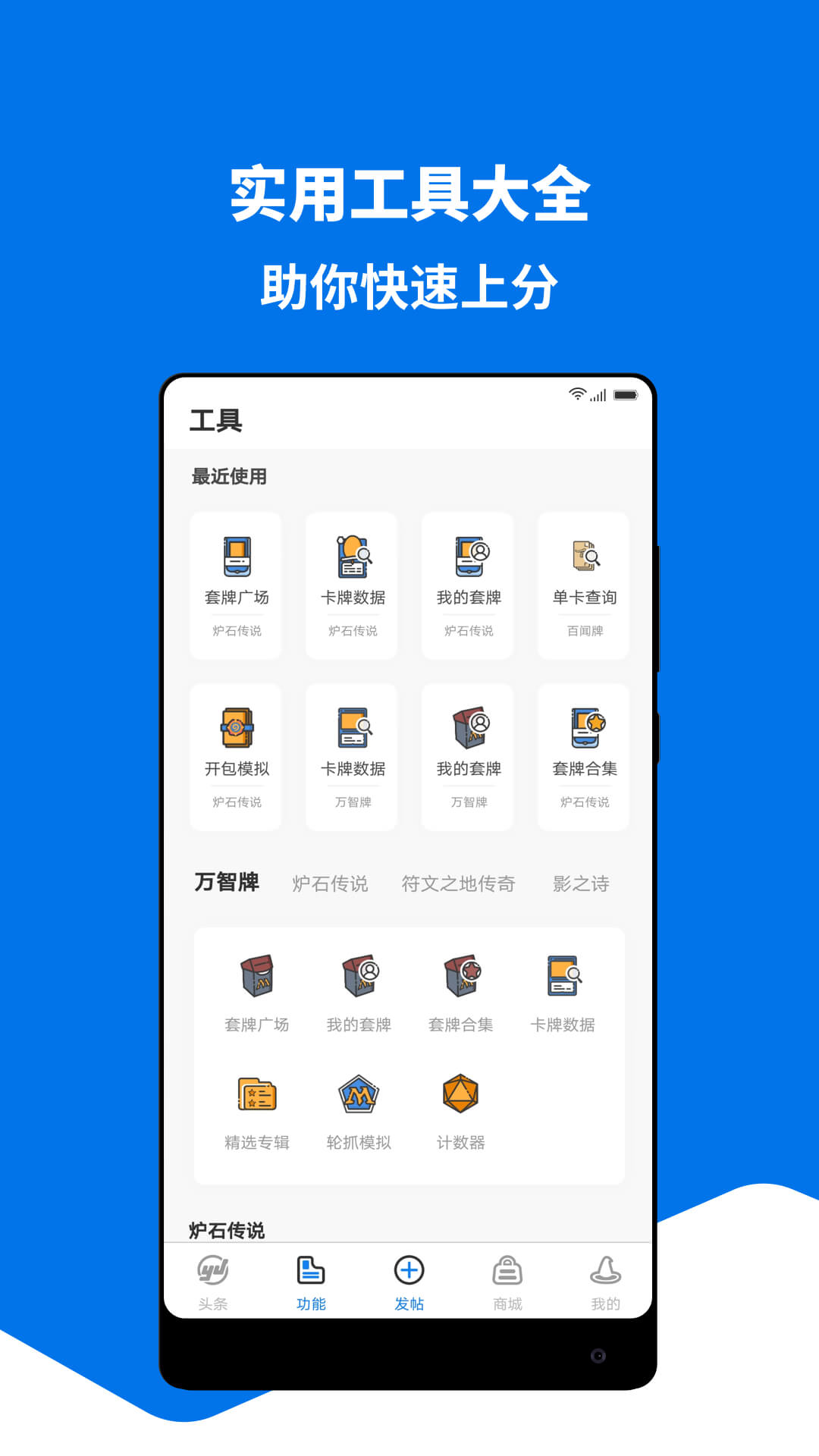 1、全天不间断更新经过专人编辑的优质新闻资讯,及时有趣的内容让你刷不停2、主打社区:炉石传说、符文之地、昆特牌、百闻牌、万智牌、影之诗、游戏王,云顶之弈