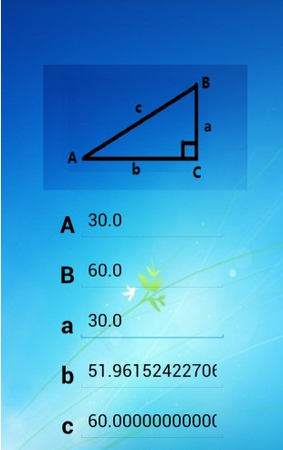 4、可计算正弦,余弦,正切函数。已知,两边求角度或者已知一角一边求另两边。