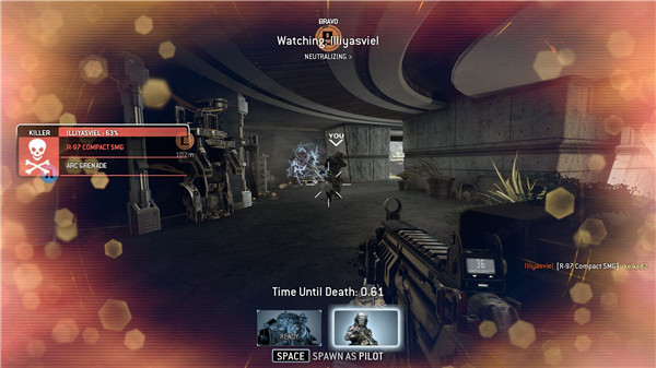 最后一个练习就是召唤泰坦,瞄准IMC的一台泰坦,然后按V键就可以让泰坦砸毁敌人的泰坦。