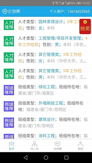 指承包方用户的分包单位,例如:工程班主、设计团队、销售团队等。团队用户未注册为企业单位,不具备企业法人资格。团队用户可在平台上寻找团队用户并分包业务;亦可平台上寻找个人用户组建团队;