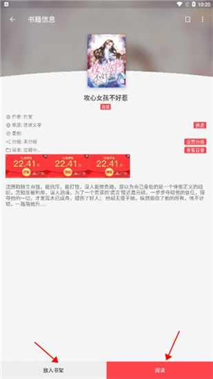5、随便点开一部小说,这里可以看到书籍的信息,然后点击阅读