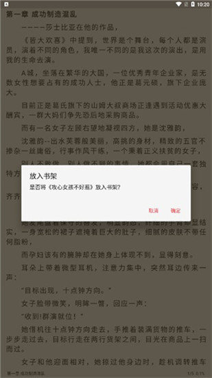 7、如果不想看了可以返回退出阅读界面,在这里可以把想要阅读的小说放入书架