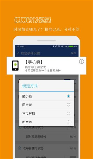 3、独创一键锁定,让智能手机秒变功能手机,防沉迷我们更懂你。