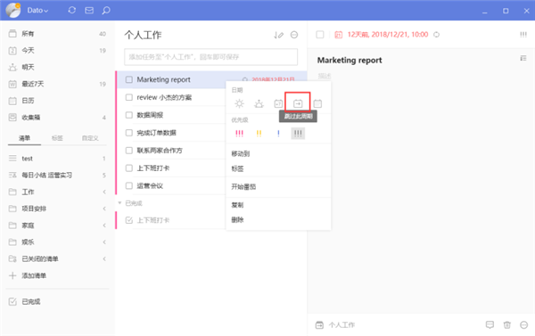 有了日历视图,周计划、月计划一眼即知,你还能方便地拖拽任务进行安排。