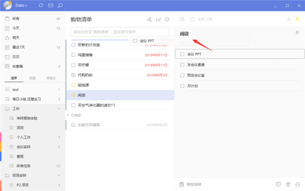 1、滴答清单绿色电脑版任务和子任务支持相互拖动