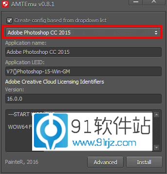 3、安装完成后先不要运行,我们打开PS CC 2015.5注册机,选择版本为“Photoshop CC 2015”