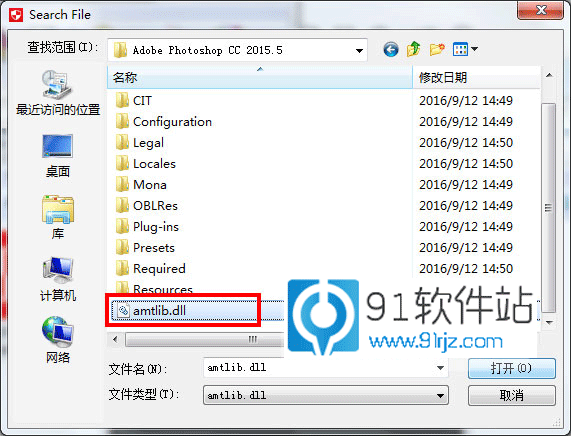 4、点击“”,选择Photoshop CC 2015.5目录下的“”文件打开即可,默认安装目录为C:Program FilesAdobeAdobe Photoshop CC 2015.5