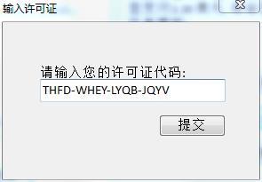 2、将许可证代码【THFD-WHEY-LYQB-JQYV 】输入到注册界面,点击提交。