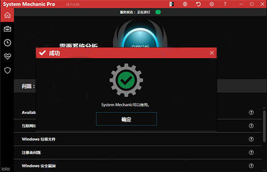 5、打开程序,可以选择右上角的“?”,选择注册,填入任意信息即可提示注册成功,如下图,表示System Mechanic Pro破解版安装完成,亲测所有功能均可用,没有限制,请放心体验。