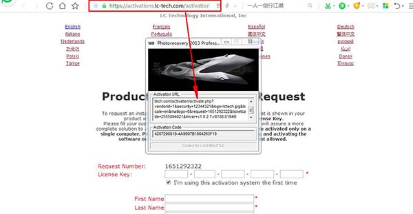 2、打开了激活网页,然后打开软件包中的注册机“Keygen.exe”,运行注册机,将该网页的链接复制到注册机中,自动生成注册码。