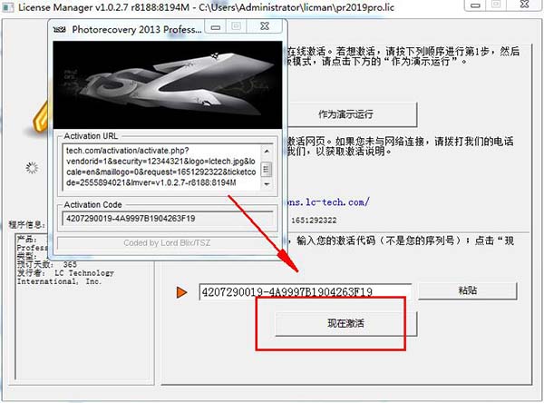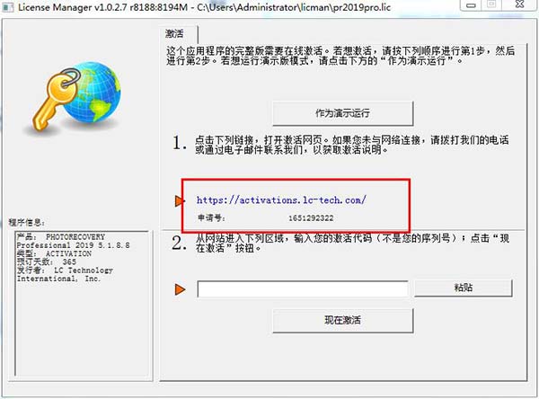 3、然后将获得的注册码复制到软件注册窗口,点击现在激活。