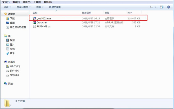 1、下载软件压缩包文件,首先点击“_md5002.exe”安装原版程序