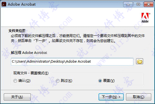 2、首先双击文件“Acrobat_DC_Web_WWMUI_201806.exe”安装原程序,将其解压出来按默认路径即可;