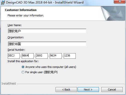4、填写注册相关信息,序列号填写注册机中的即可,点击下一步